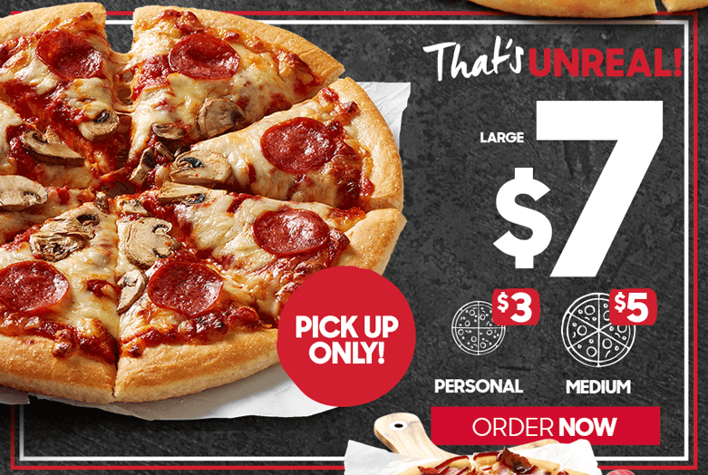 50% off Pizza Hut Coupons & Vouchers (October 2022) 1 Large Pizza + 2x WingStreet 6 Packs $25.95 Pickup or $35.95 Delivered. Click to get deal. Share Pasta + Large Pizza + 2 Sides for $34.95 Pickup or $44.95 Delivered. Click to get deal. $5.95 Personal Pan + 375ml Drink Pickup. Click to get deal. $7.95 Personal Pan + 1/2 Garlic Bread + 375ml Drink Pickup.